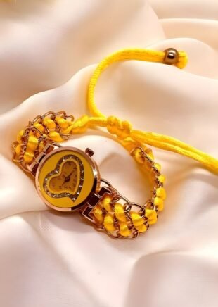 Fashion Yellow Chain-Woven Strap Watch with Heart Face