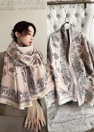 Luxurious Beige Digital Print Shawl with Paisley and Border Design