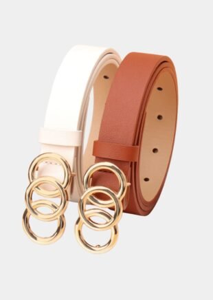Minimalist Faux Leather Belt with Interlocking Gold Rings Buckle (Set of 2)