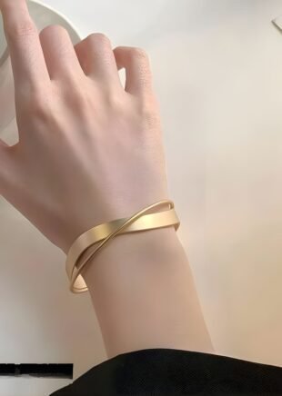Minimalist Intertwined Twist Gold-Tone Cuff Bracelet