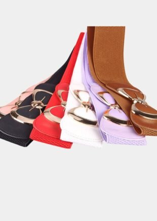Wide Elastic Waist Cinching Belt with Metallic Buckle (Multi-Color Options)
