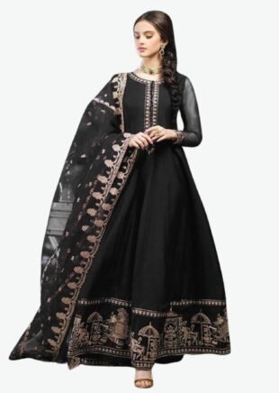 Heavily Embroidered Maxi Gown with Motif Border & Dupatta