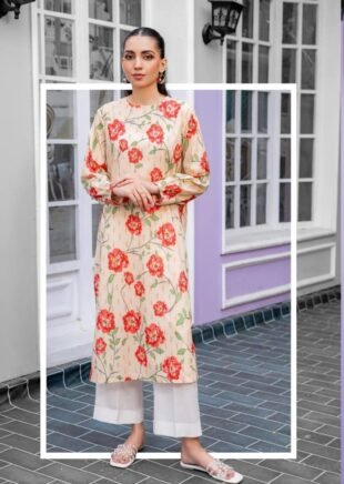 Vintage Cream/Beige Kurti with Red Floral Print
