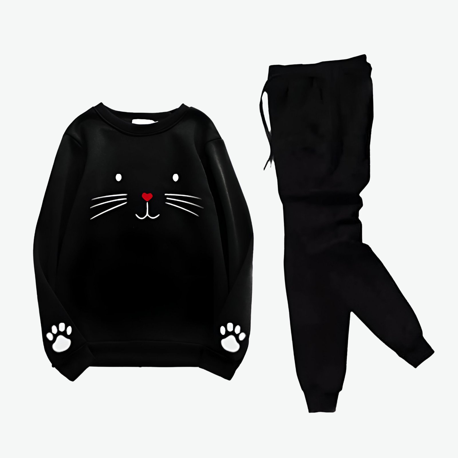 Make a bold casual statement with this full-sleeve tracksuit featuring a striking cartoon graphic. The set includes a comfortable black crewneck sweatshirt with a ‘Bad Boy’ Tom & Jerry print, showing Tom wearing sunglasses, a gold chain, and smoking, with “BAD BOY” text repeated above. The set is completed with matching solid black drawstring joggers, perfect for a relaxed, street-style look, casual outings, or loungewear.